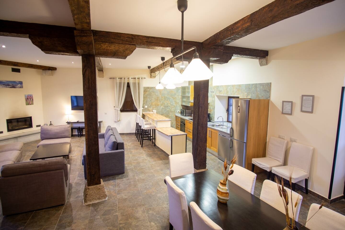 La casa LA IGLESUELA dispone, así mismo, de salón con una gran chimenea, cocina completa con horno, lavadora y lavavajillas. Su jardín tiene barbacoa, cenador , plazuela, aparcamiento en su interior, zona de baño privada y de juegos.